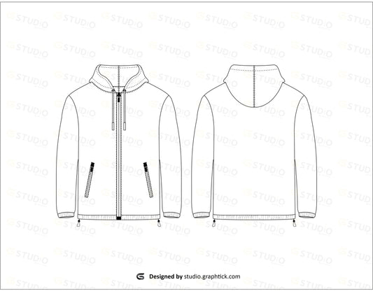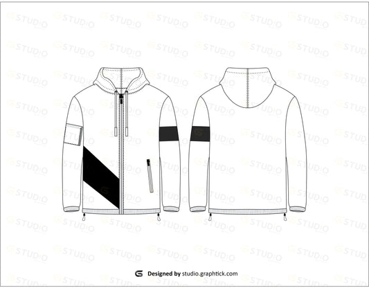 MENS HIGHNECK ZIPPER HOODIE FLAT SKETCH