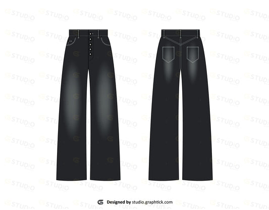 WOMENS WIDE LEG DENIM PANTS FLAT SKETCH