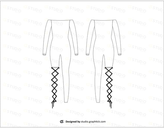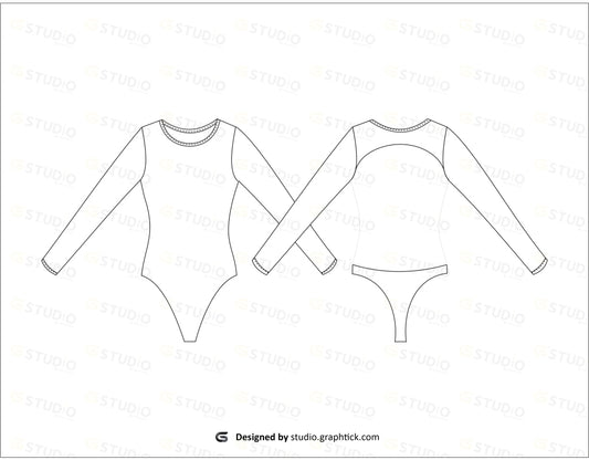 GIRLS FULL SLEEVE BACKLESS BODYSUIT FLAT SKETCH