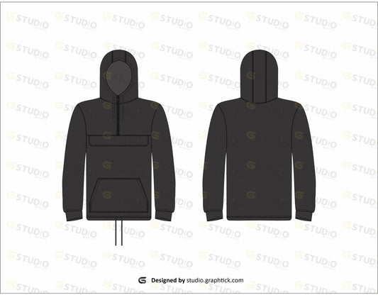 MENS HOODIE POCKET POUCH FLAT SKETCH
