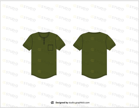 MENS HALF WAY ZIPPER TEE SHIRT FLAT SKETCH