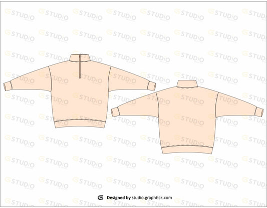 MENS HALF WAY ZIPPER SHIRT FLAT SKETCH