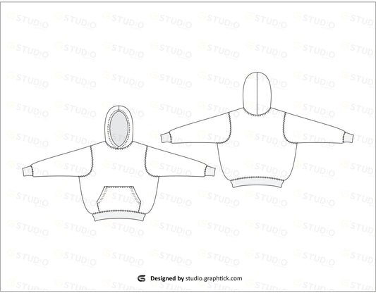 LOOSE FIT OVERSIZED BAGGY STYLE HOODIE FLAT SKETCH