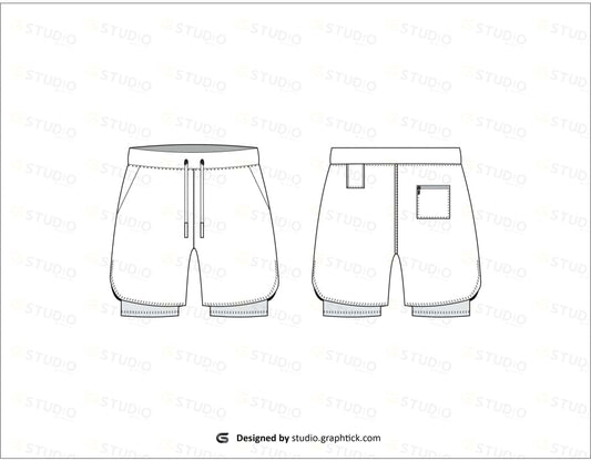 MENS GYM SHORTS WITH LINING FLAT SKETCH
