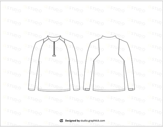 MENS FITNESS FULL SLEEVE ZIPPER RASHGUARD FLAT SKETCH