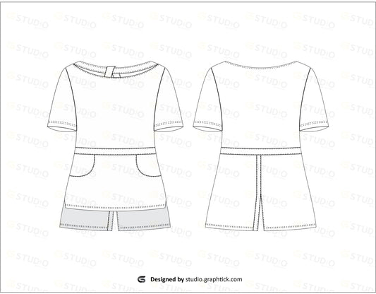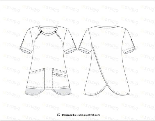 MEDICAL SCRUBS TOP FLAT SKETCH