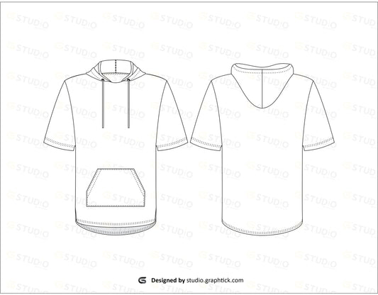 MENS SHORT SLEEVE SCALLOPED BOTTOM HOODIE FLAT SKETCH