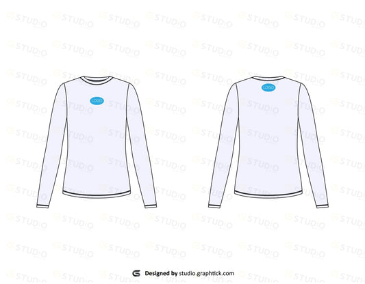WOMENS FULL SLEEVE CREW NECK TEE SHIRT FLAT SKETCH